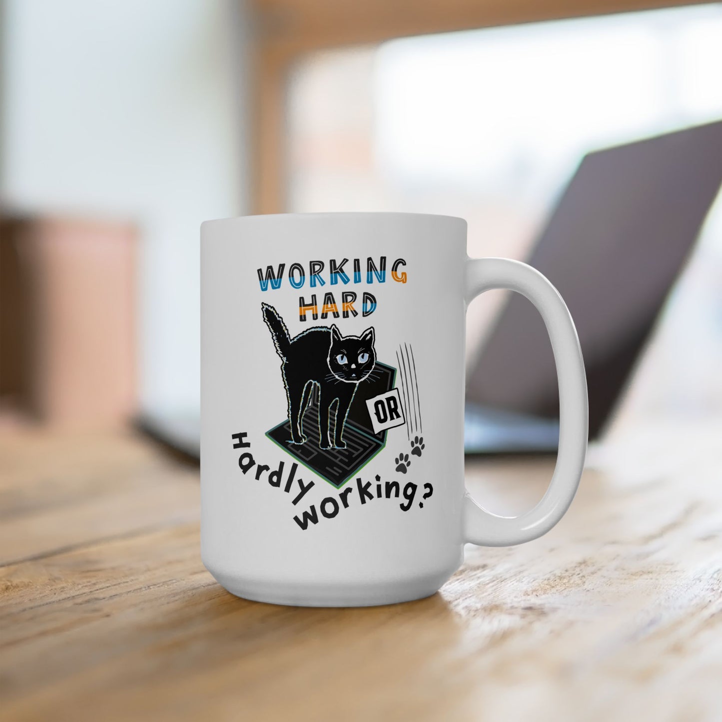 Working Hard Hardly Working Cat Mug. Ceramic Mug, (11oz, 15oz)