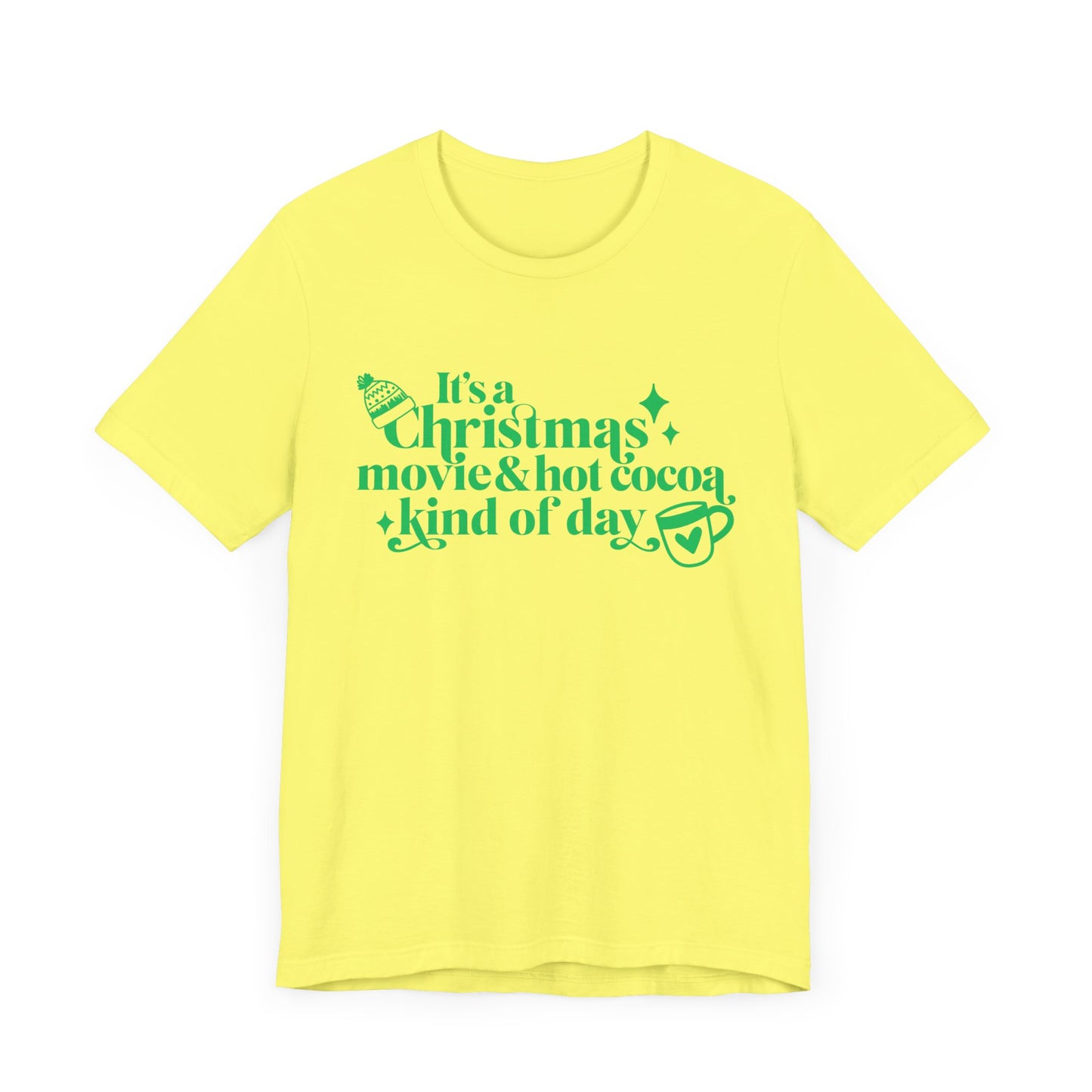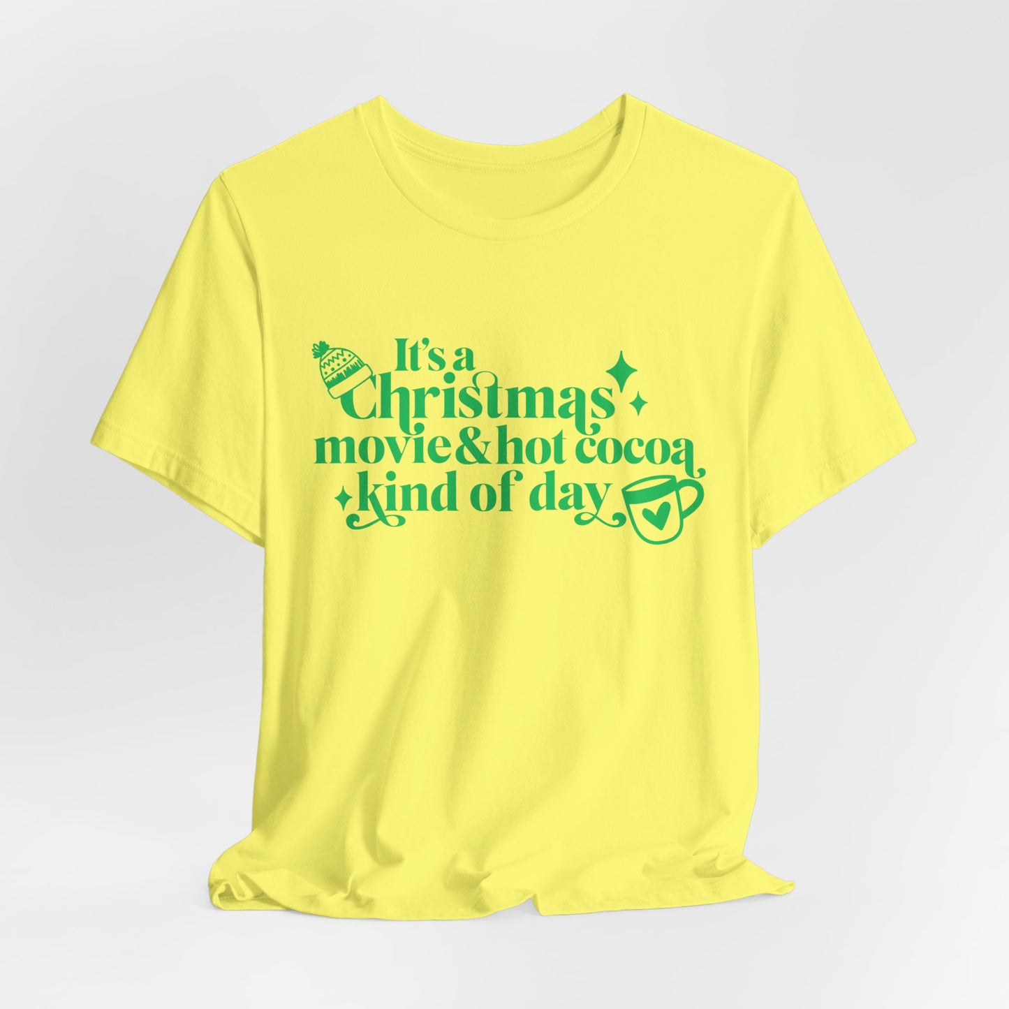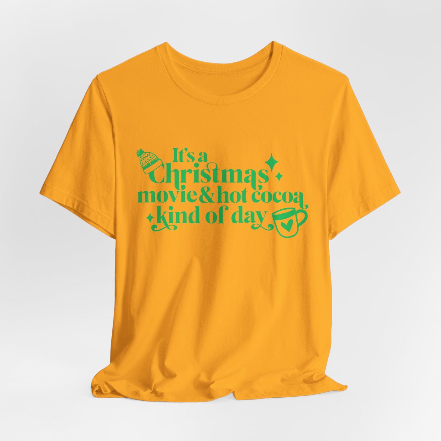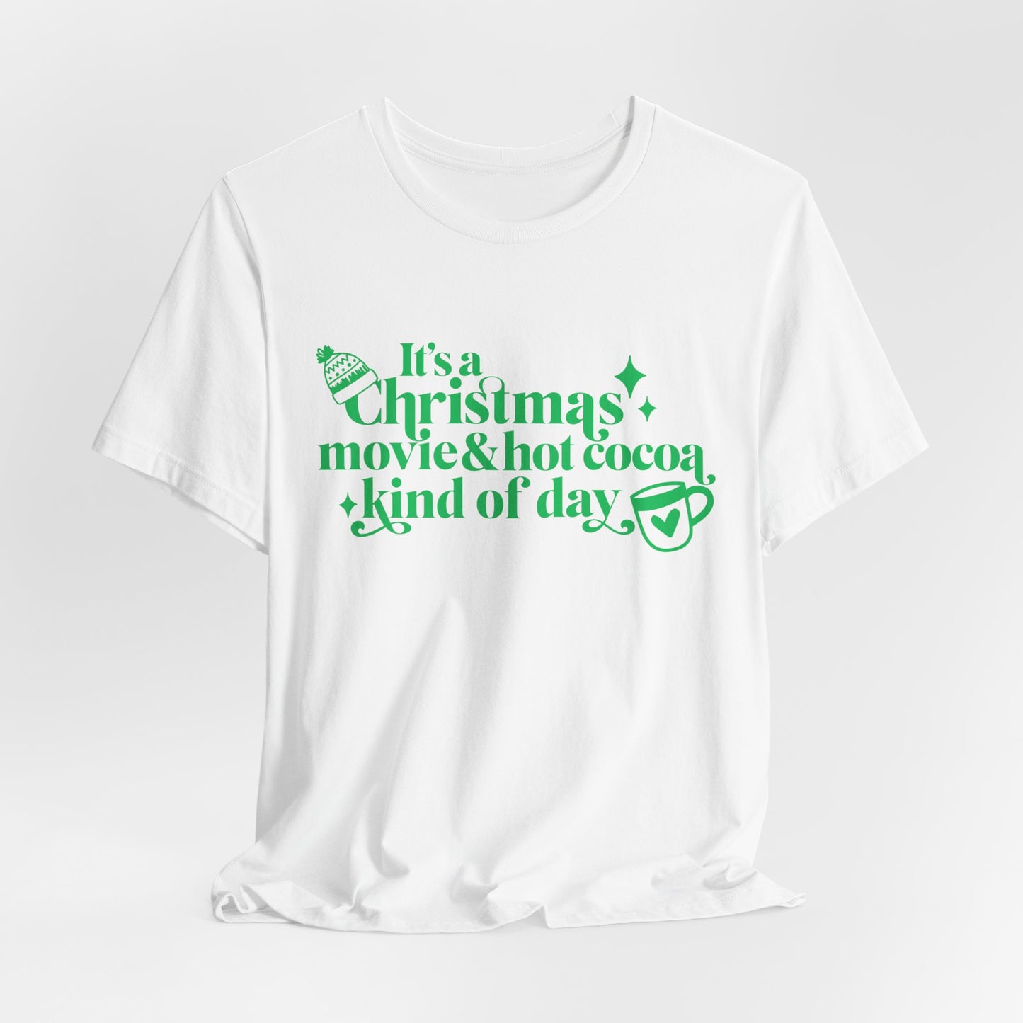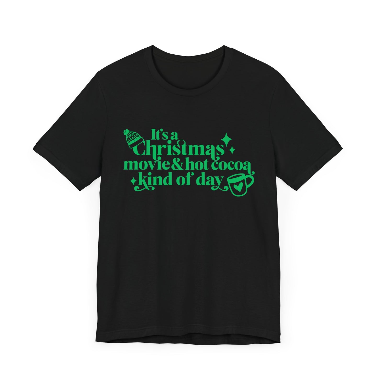 Christmas Movie Hot Cocoa T-shirt Design. Unisex Jersey Short Sleeve Tee