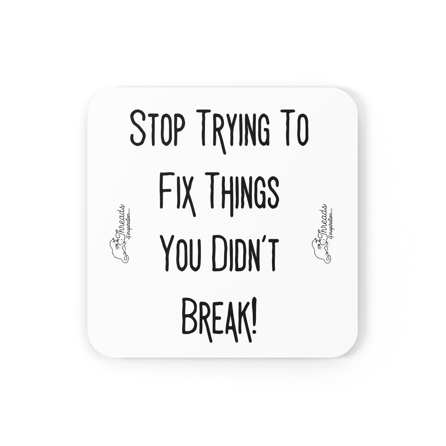 Add Stop Trying To Fix Things Coaster. Hardboard Back Coaster to the cart