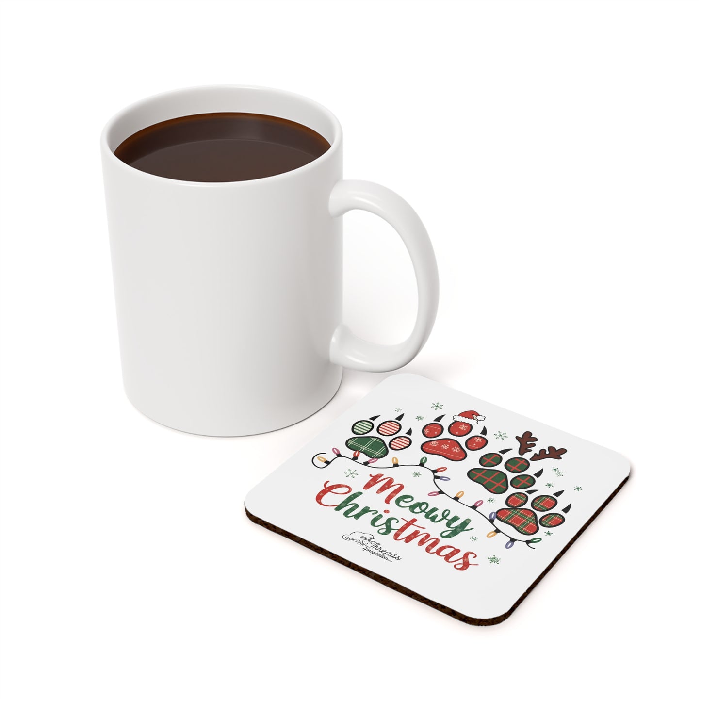Meowy Christmas Coaster. Hardboard Back Coaster