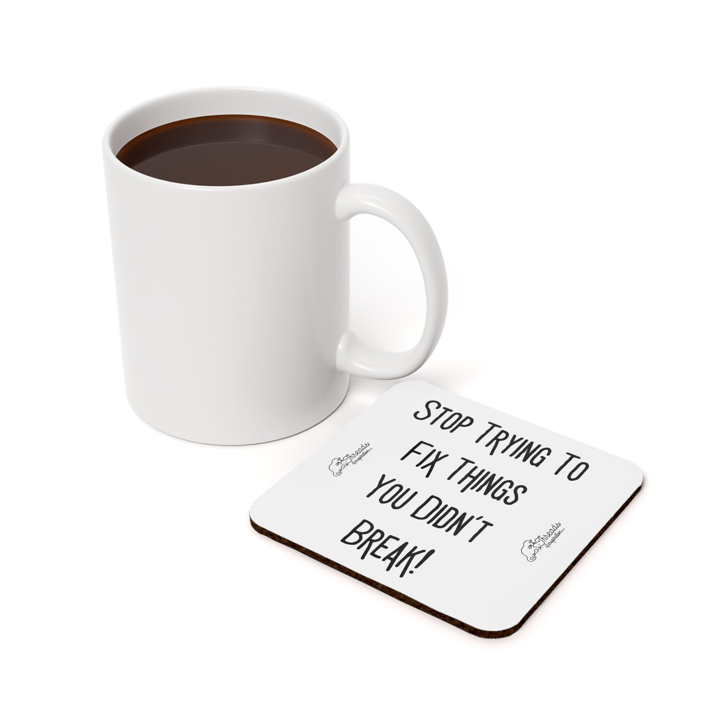 Stop Trying To Fix Things Coaster. Hardboard Back Coaster