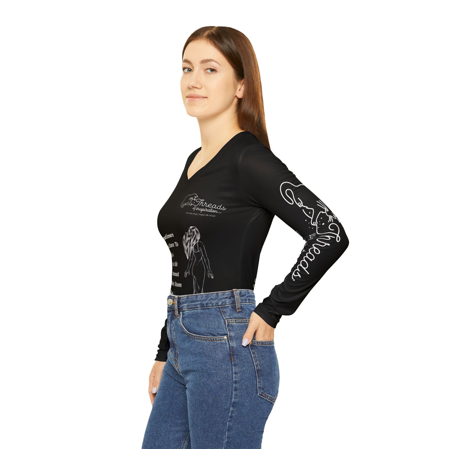 Empowering Women's Long Sleeve V-Neck Shirt - "Let Go" Inspirational Tee