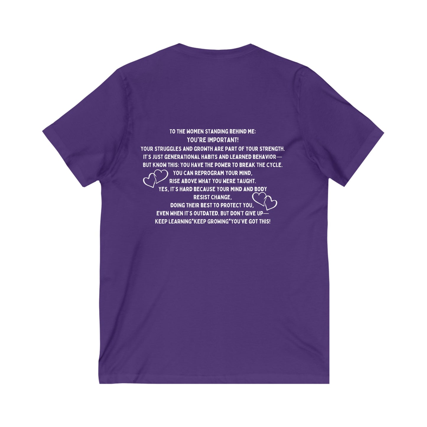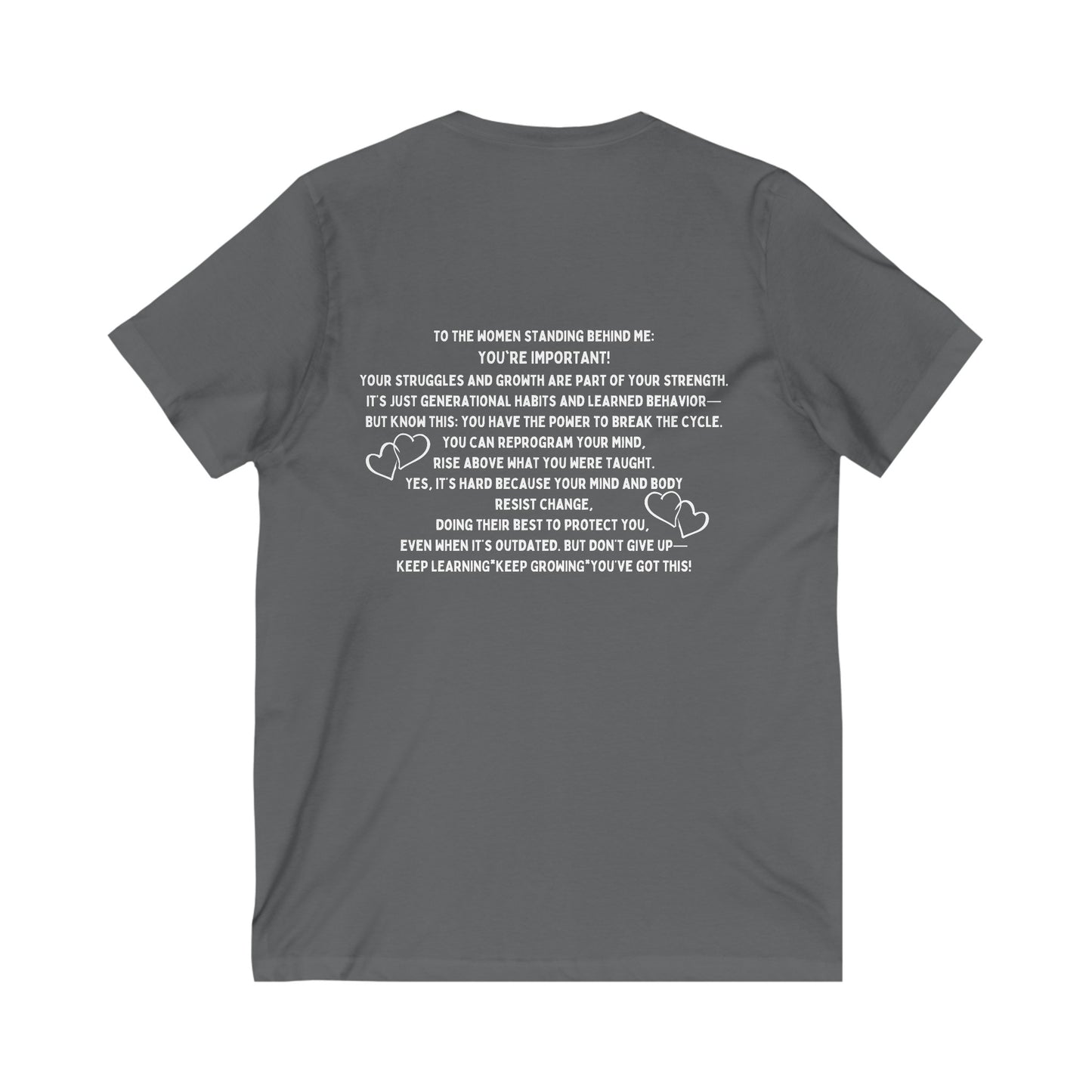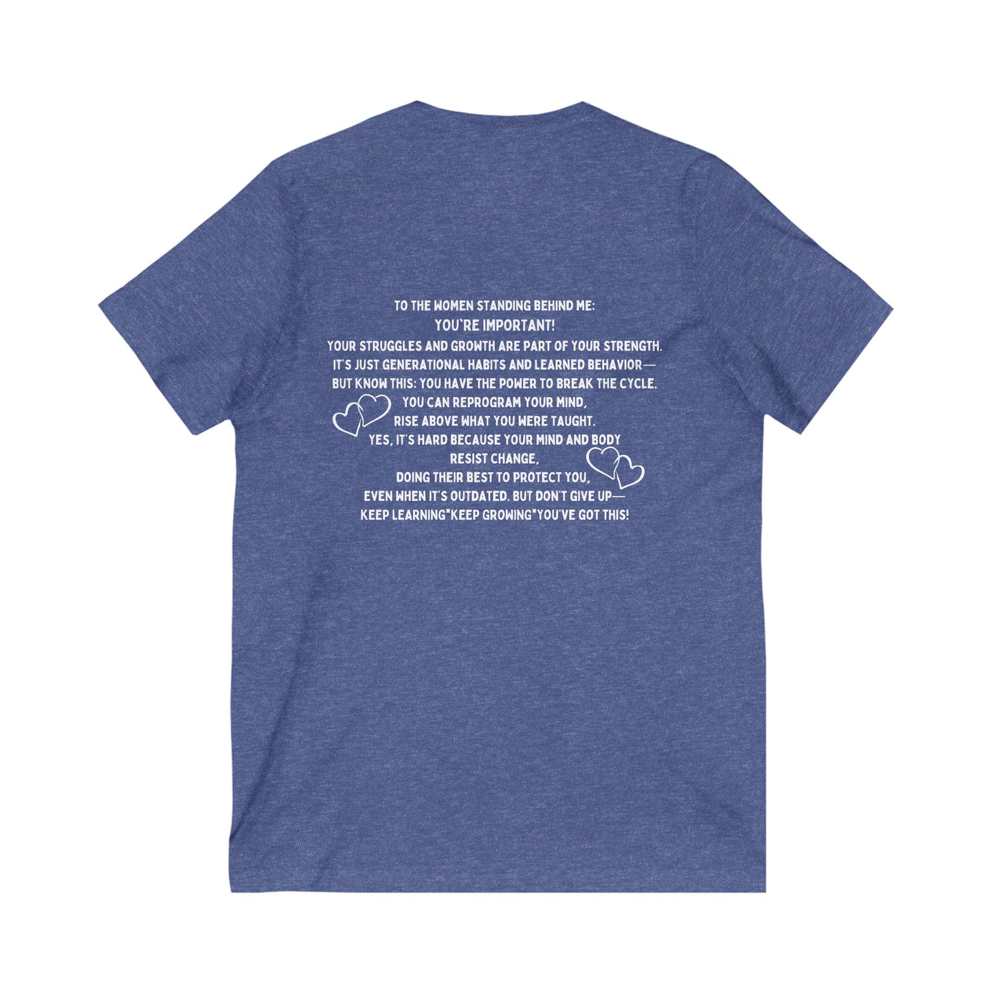 To The Women Standing Behind Me White print! Unisex Jersey Short Sleeve V-Neck Tee