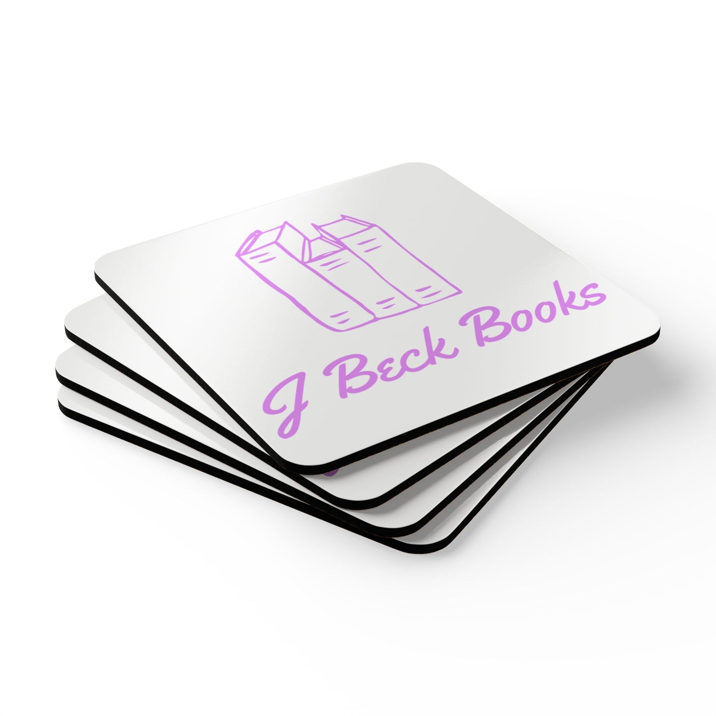 Cork Coaster Set - 'J Beck Books' Pink Bookstack Drink Coasters (4-Pack)
