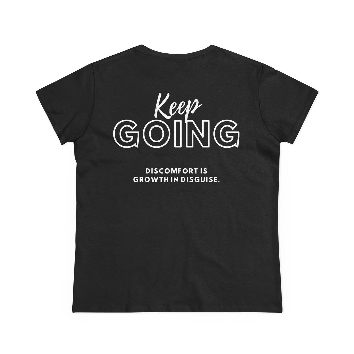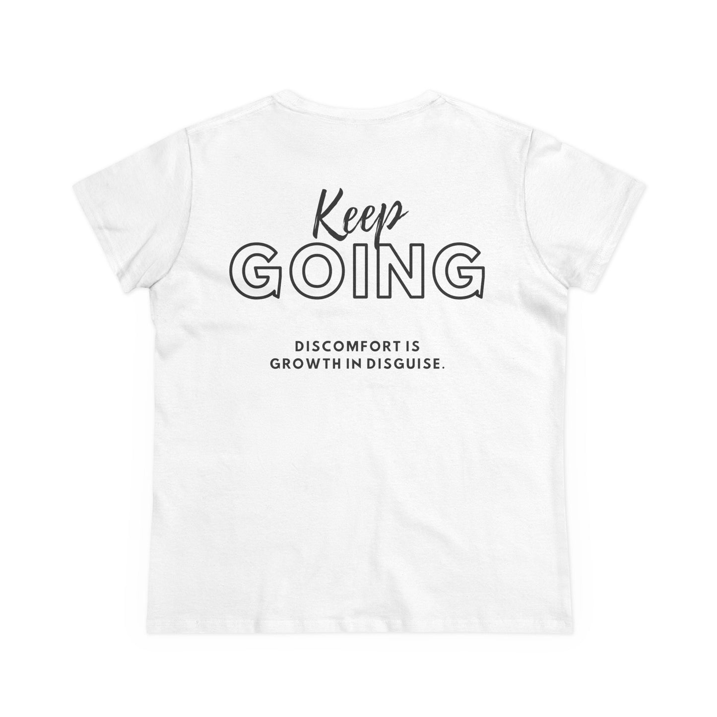 Motivational Women's Tee - "Keep Going" Discomfort Growth in Disguise