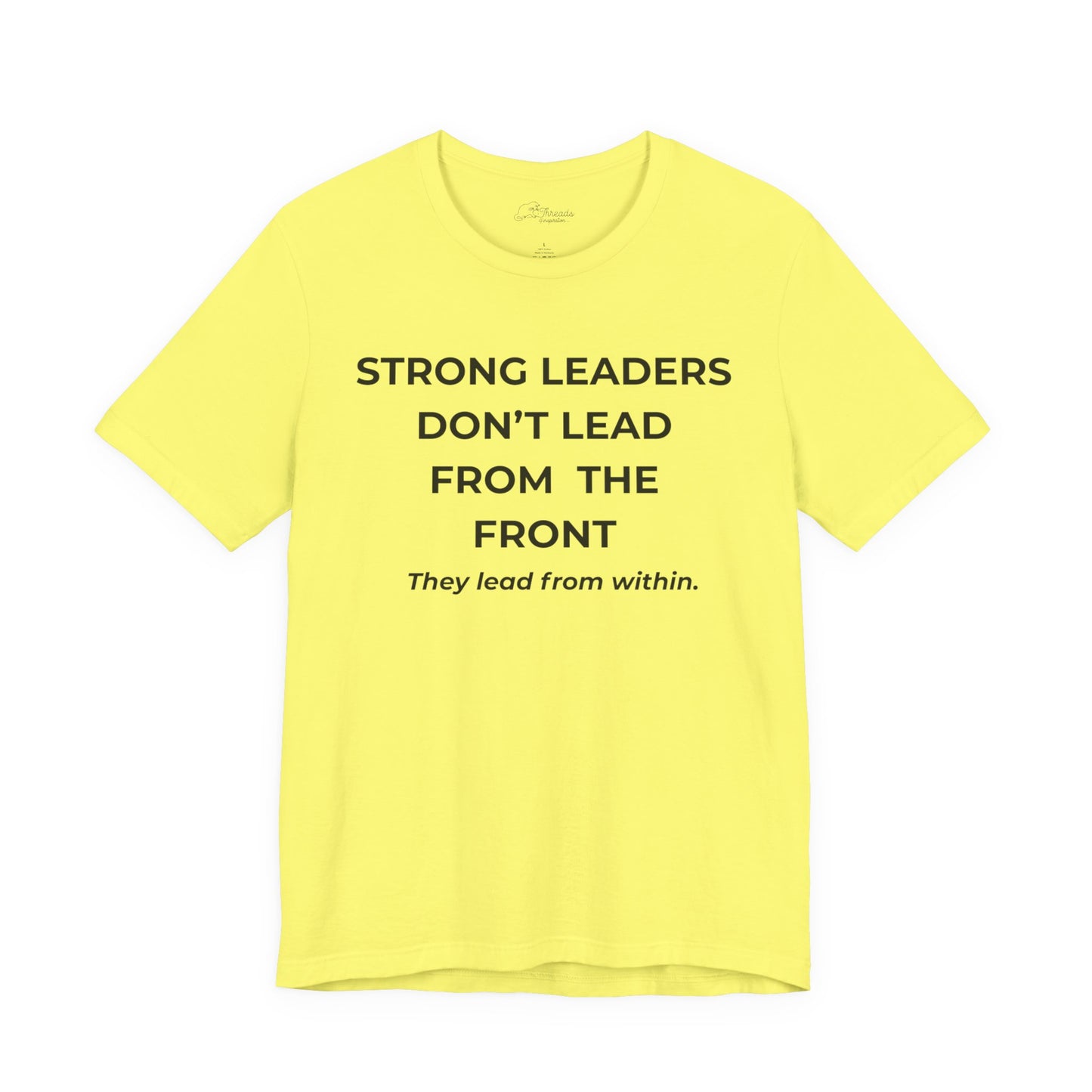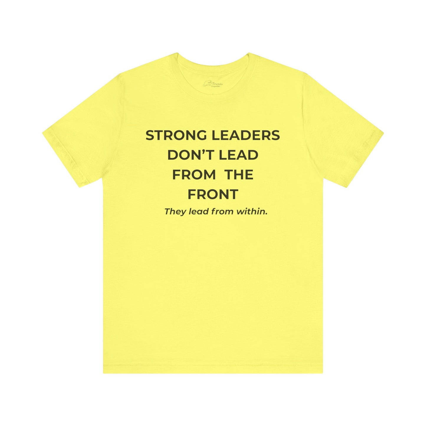 Strong Leaders Don't Lead from the Front They Lead From Within. Step into a world of comfort and style with our unisex jersey short sleeve tee. This versatile piece is designed to fit seamlessly into your everyday wardrobe, whether you're out running errands or relaxing at home. The positive message featured on the tee evokes a sense of empowerment, making it perfect for individuals who value leadership and personal growth. Ideal for casual outings, family gatherings, or even as a thoughtful gift, this tee suits various occasions including birthdays, celebrations of achievement, and motivational events. Embrace the simplicity and elegance of this tee and wear it with confidence!