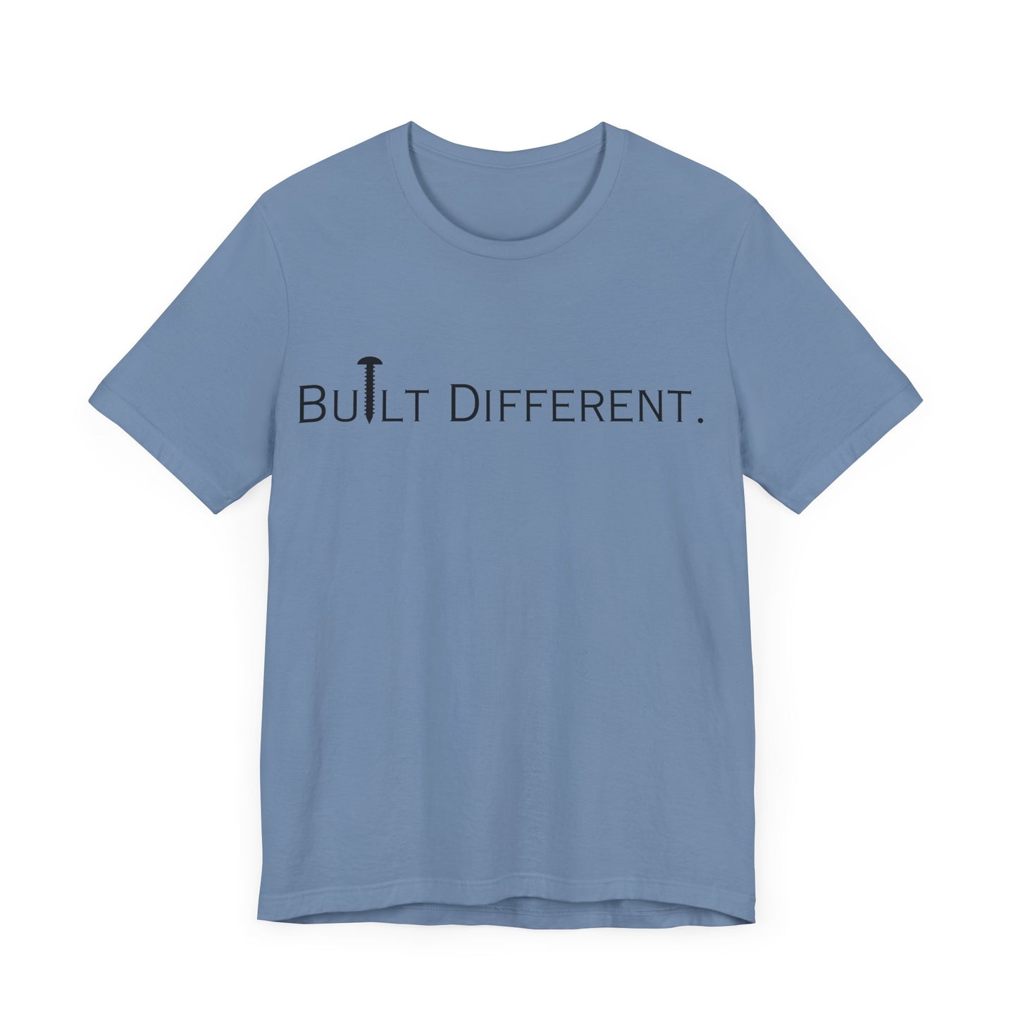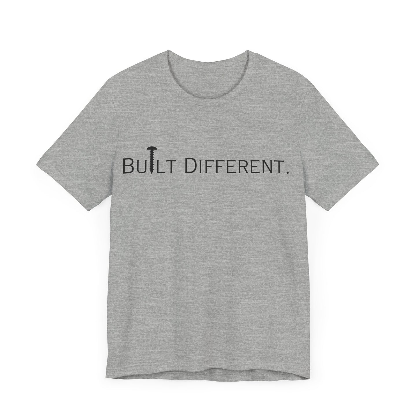 Men's T-shirts Built Different. Introducing the perfect wardrobe staple: a versatile Unisex Jersey Short Sleeve Tee designed for every occasion. This stylish tee brings a sense of casual comfort and modern flair, making it an ideal addition to your everyday outfit. Whether you're lounging at home, meeting friends, or heading to a weekend gathering, this tee seamlessly fits into your lifestyle. It’s perfect for anyone who appreciates quality apparel, especially for those celebrating milestones, holidays, or simply enjoying a casual day out. Ideal for birthdays, holidays, or just a ‘treat yourself’ moment, this tee is a relatable choice for anyone wanting to express their unique style with ease.