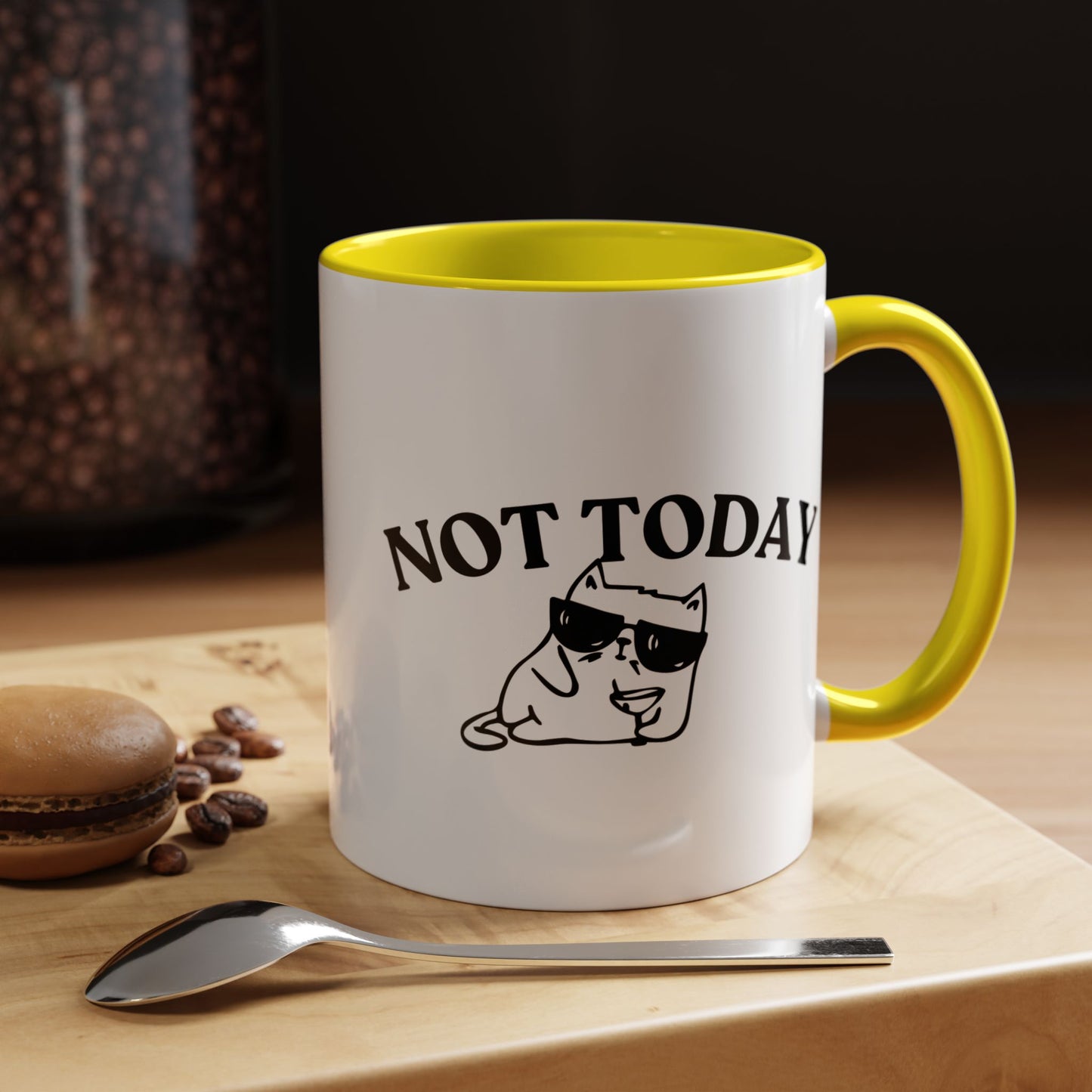 Not Today Cat Accent Coffee Mug - Fun Black Handle 11oz & 15oz