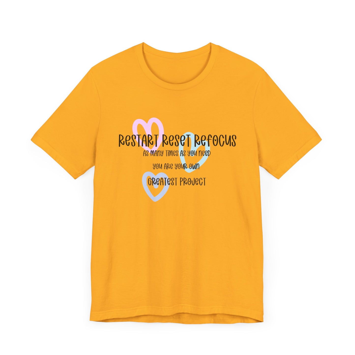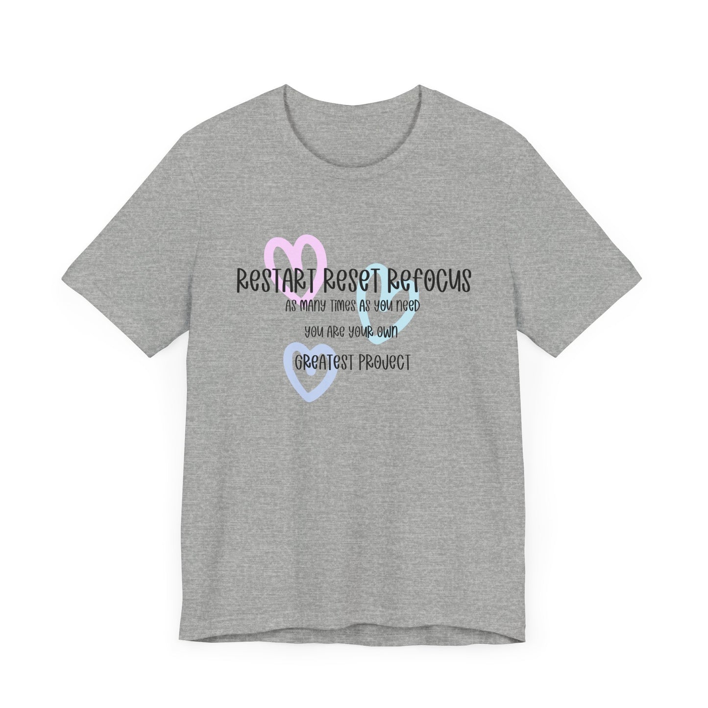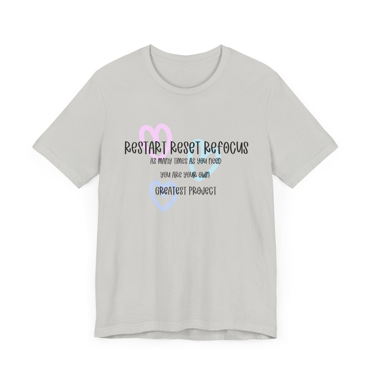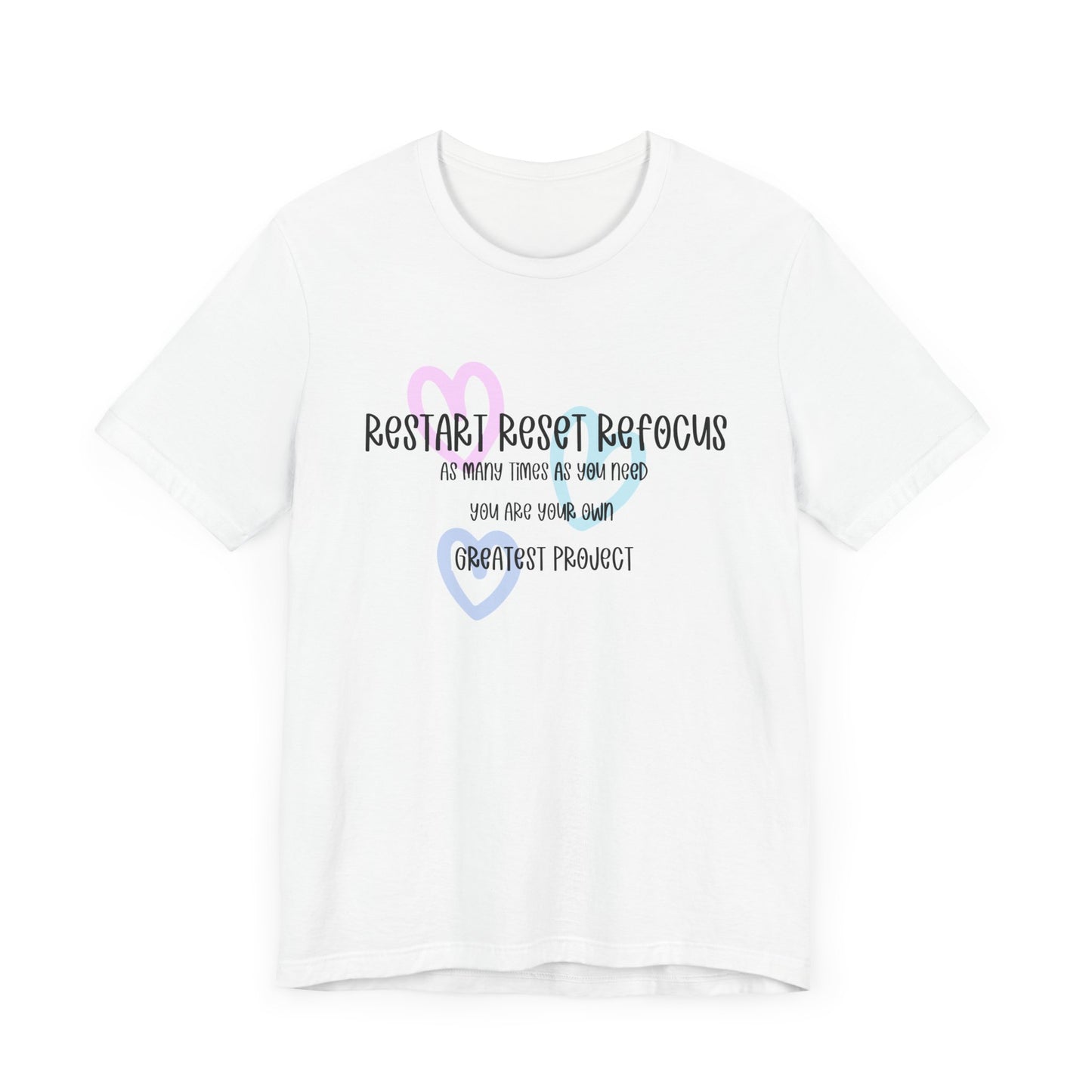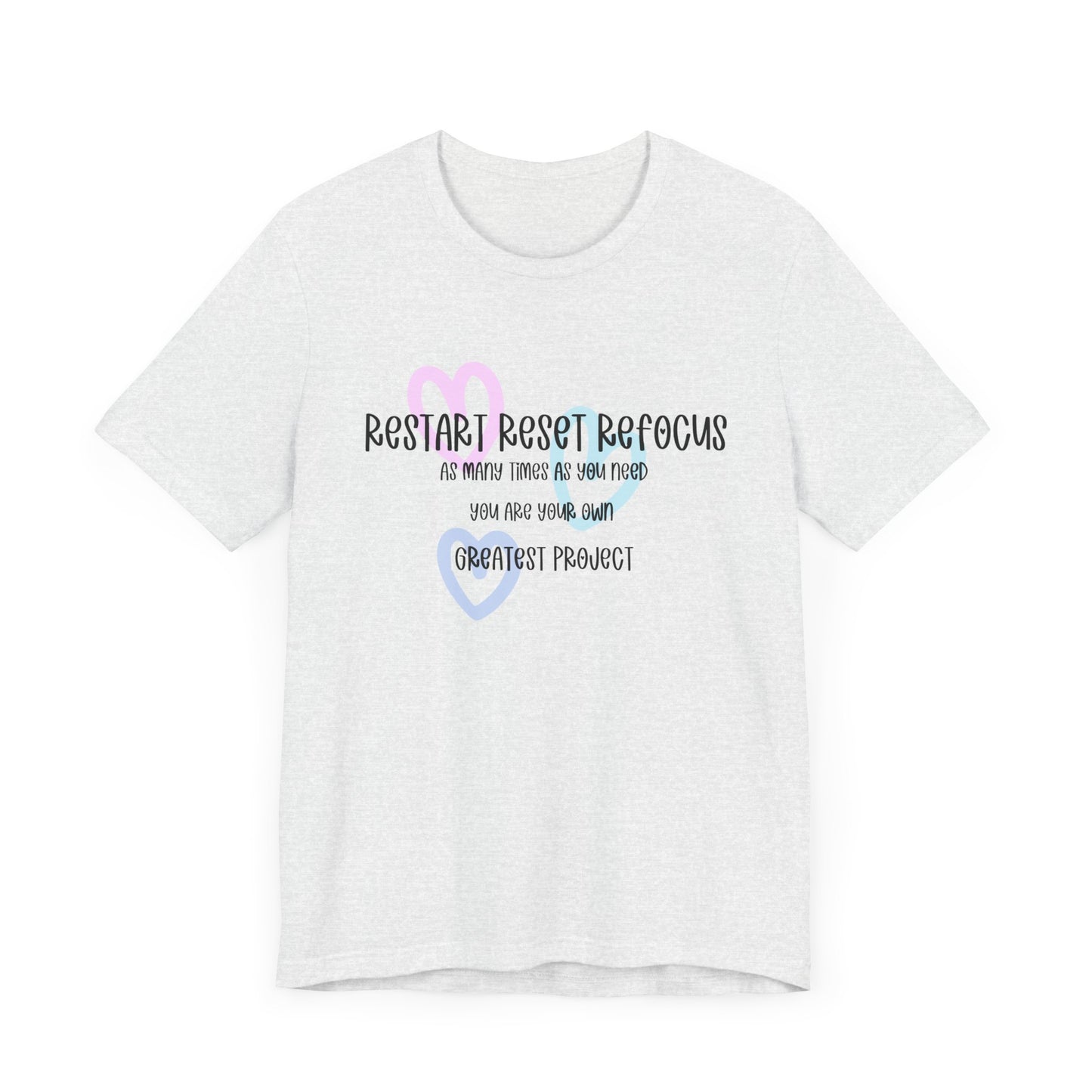 Restart Reset Refocus Shirt. Unisex Jersey Short Sleeve Tee