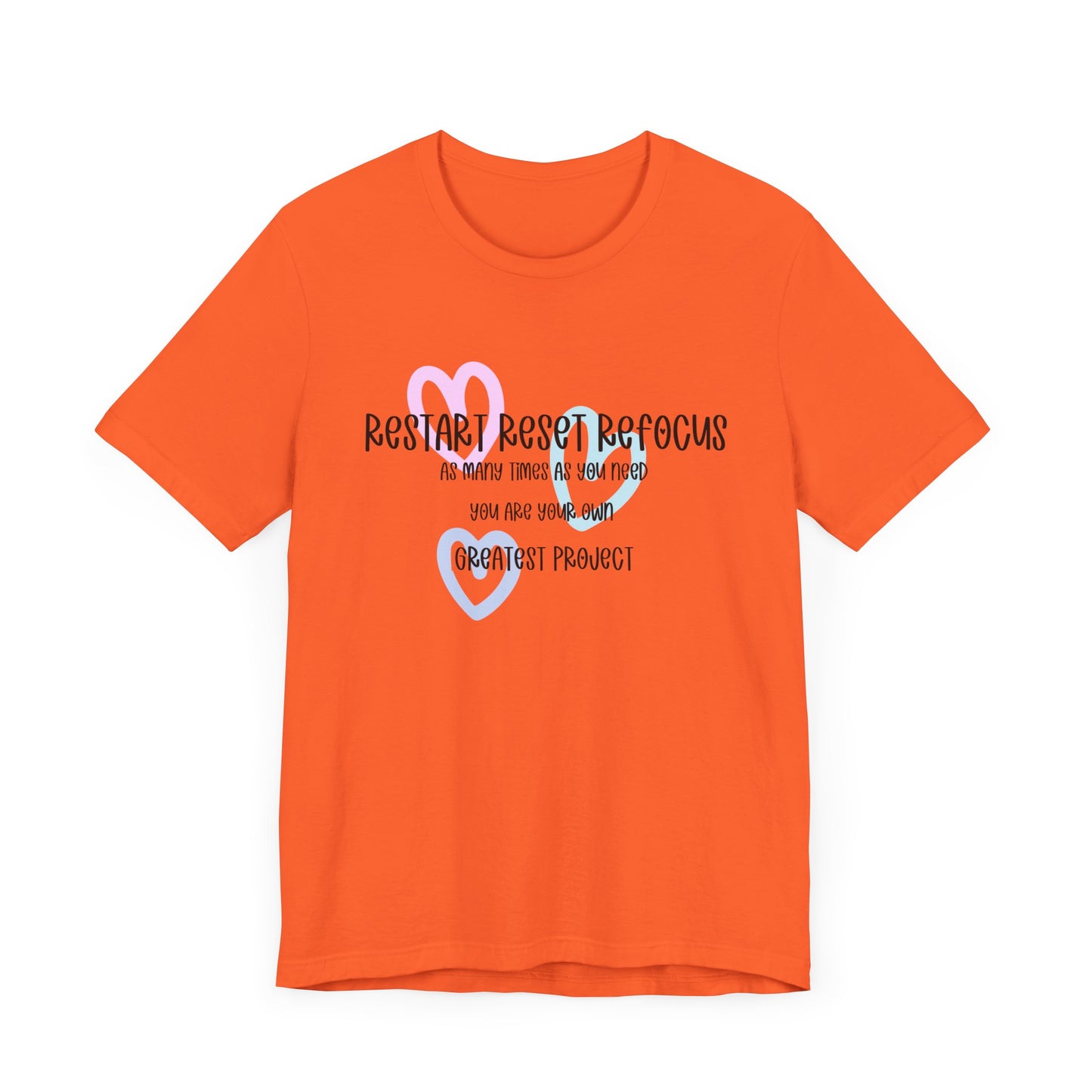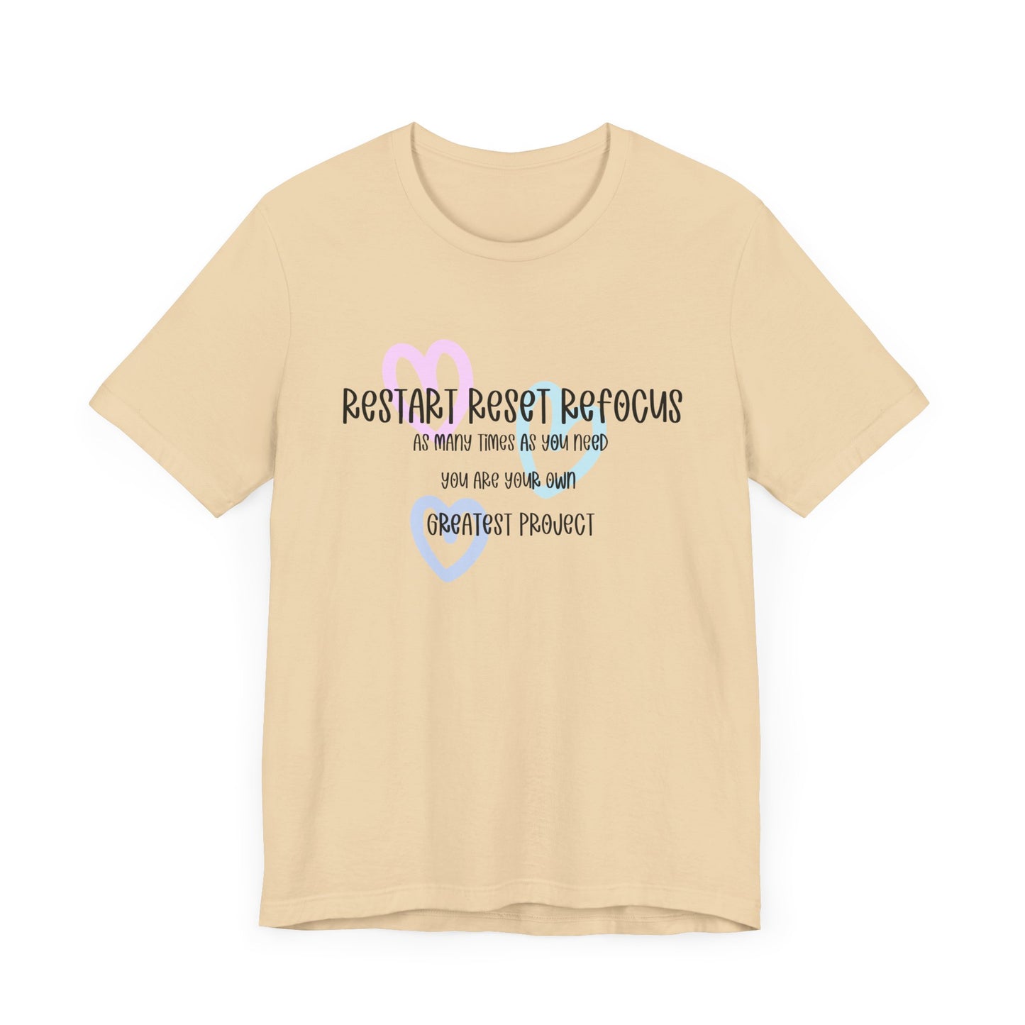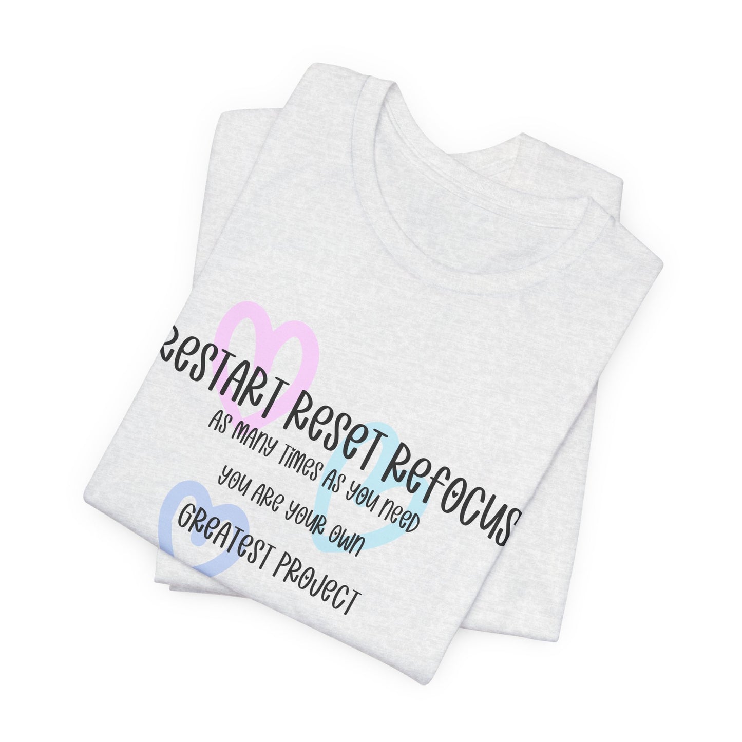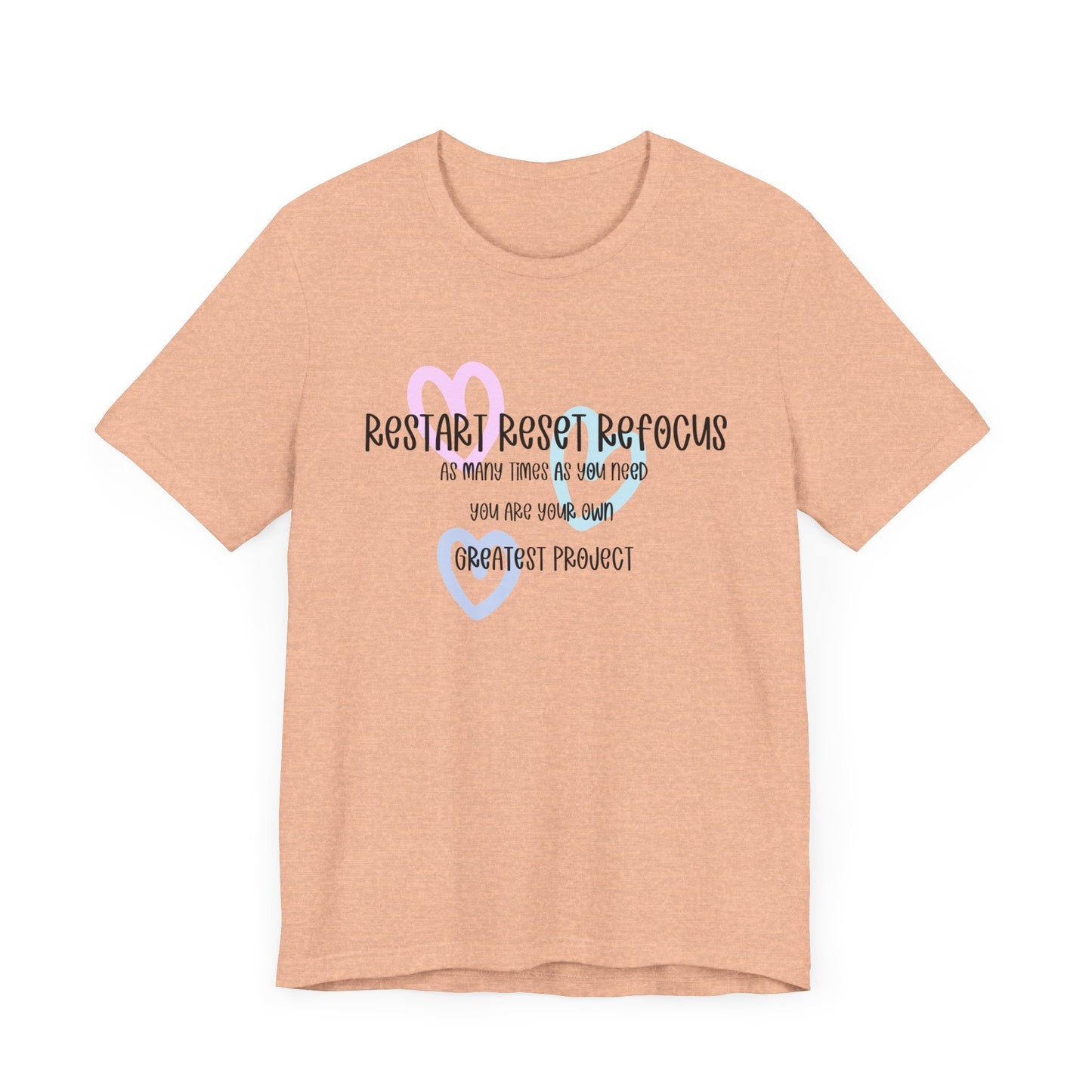 Restart Reset Refocus Shirt. Unisex Jersey Short Sleeve Tee