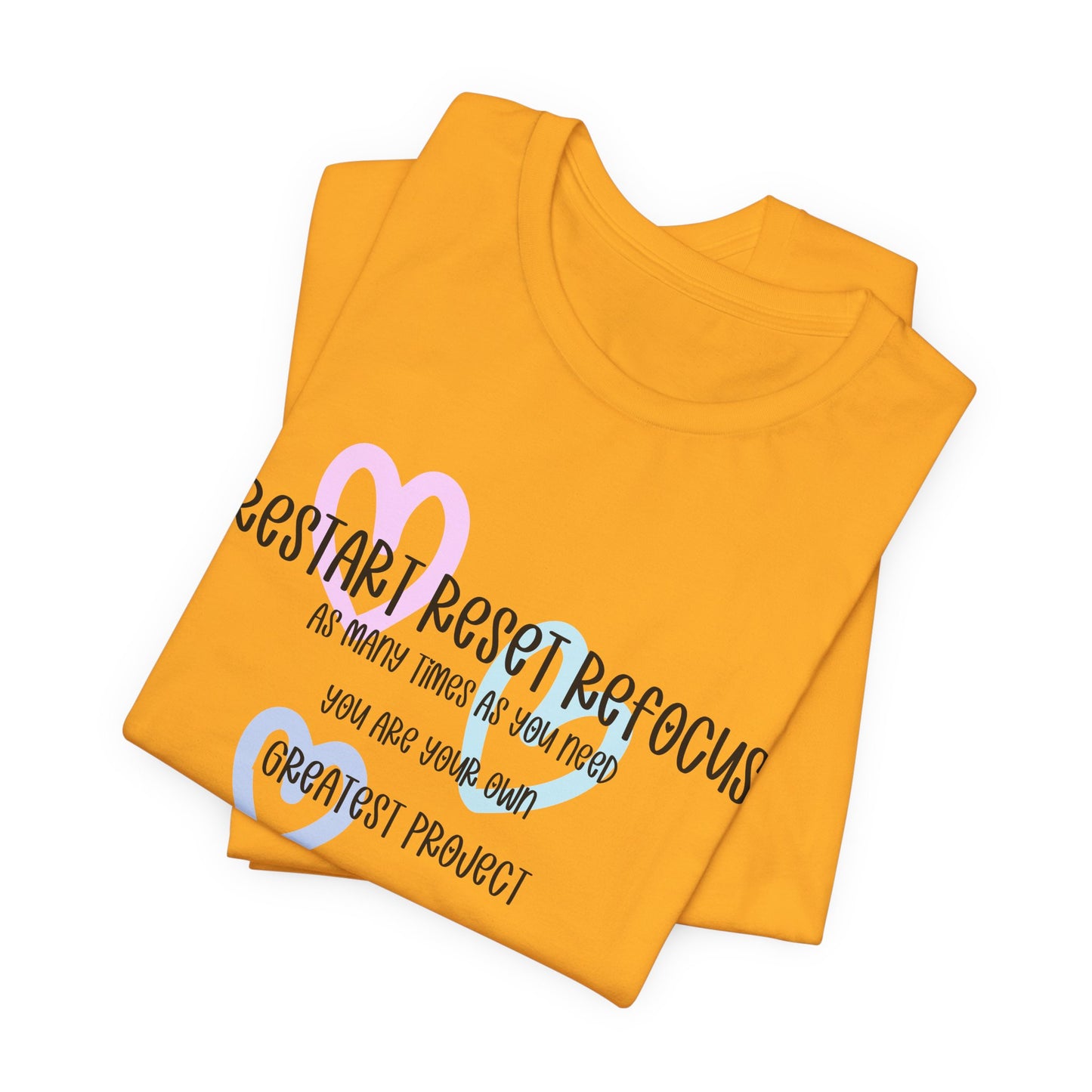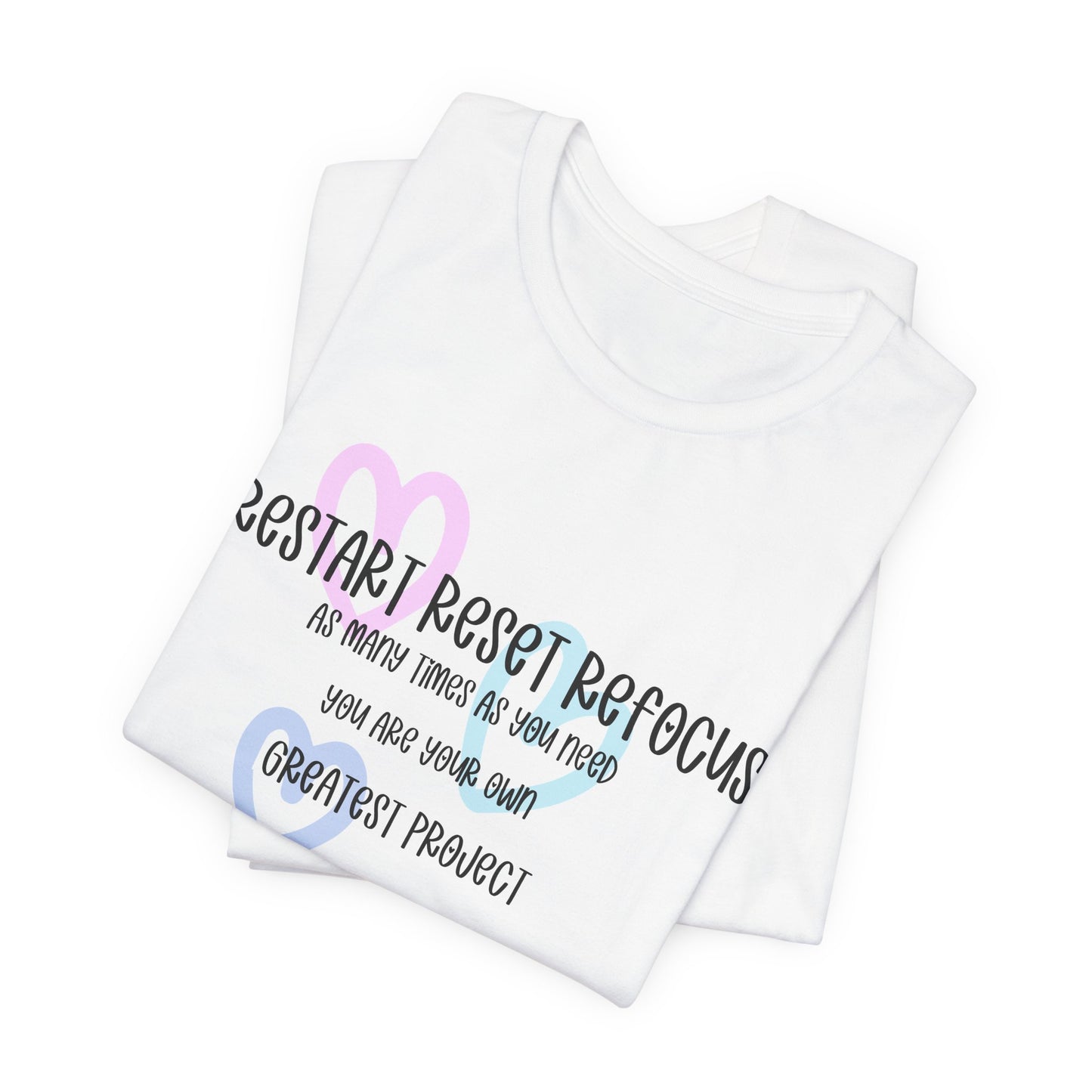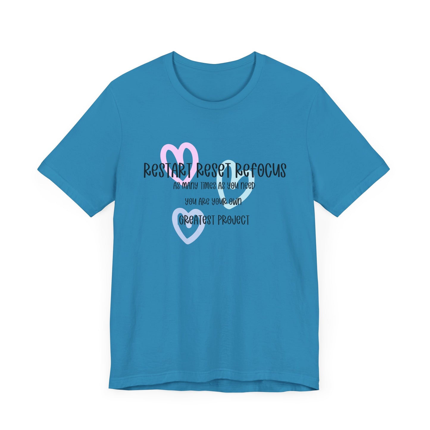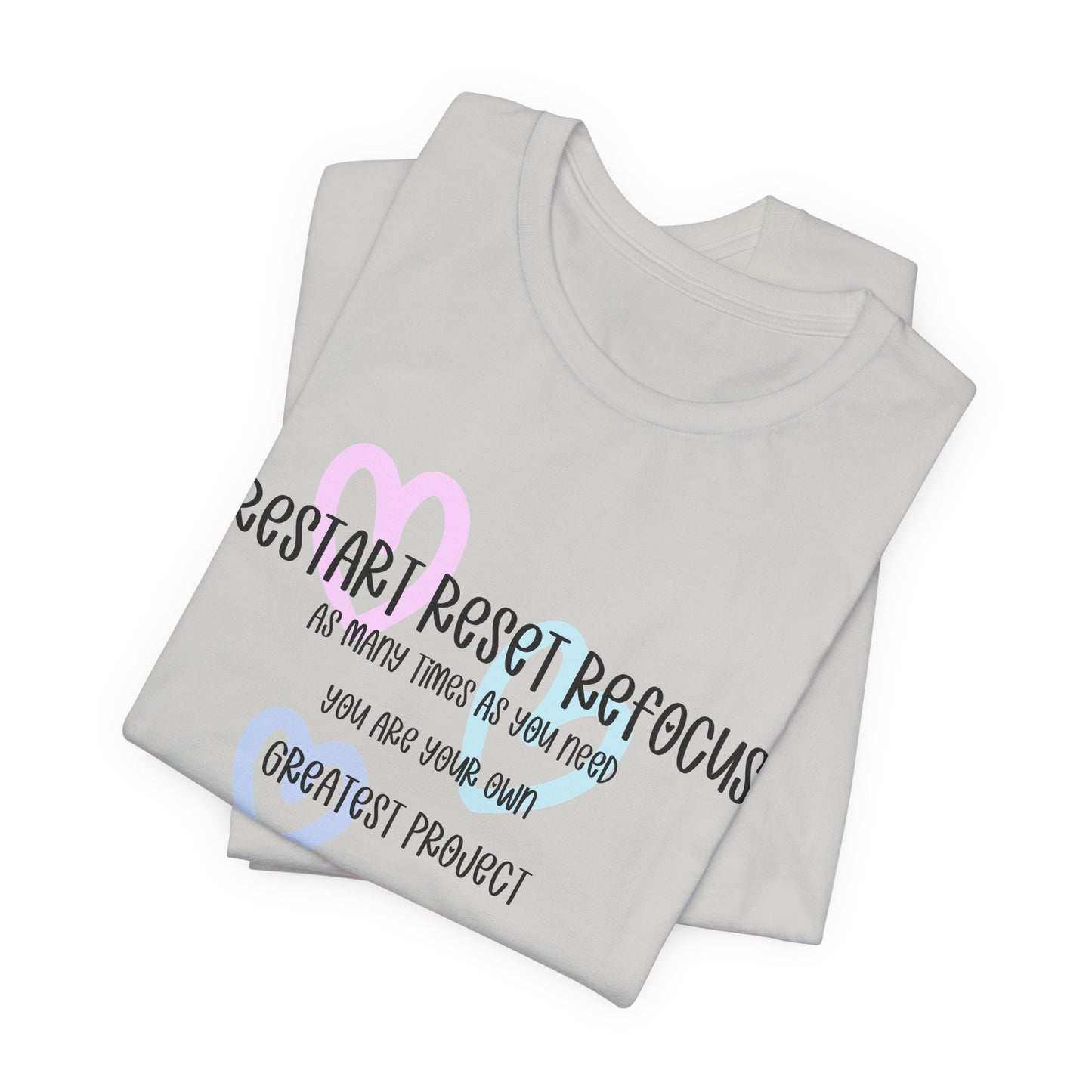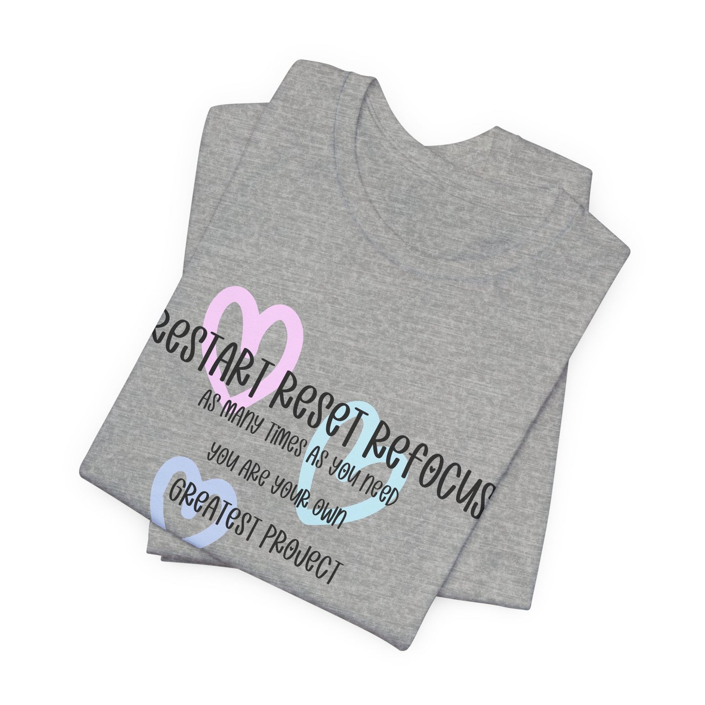Restart Reset Refocus Shirt. Unisex Jersey Short Sleeve Tee