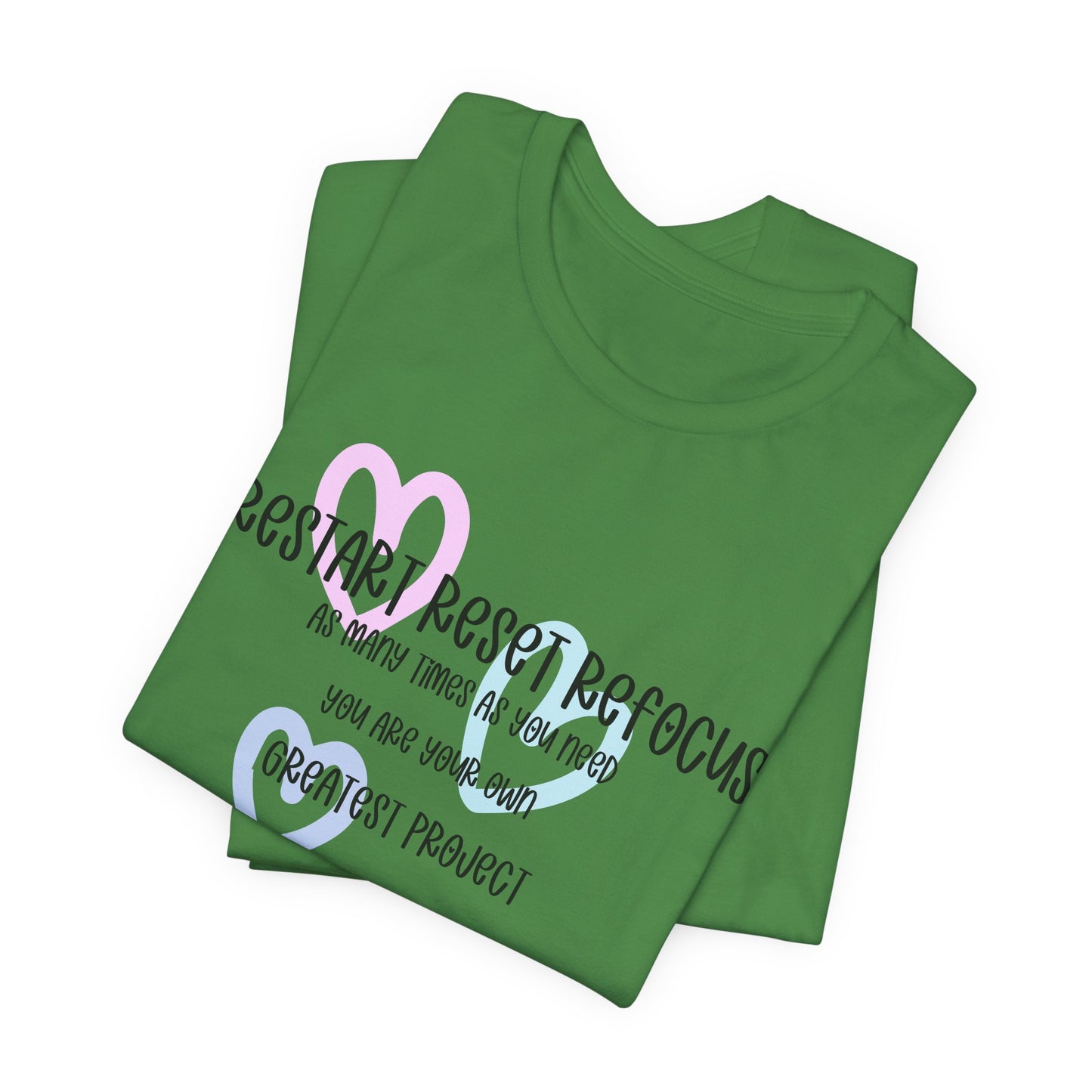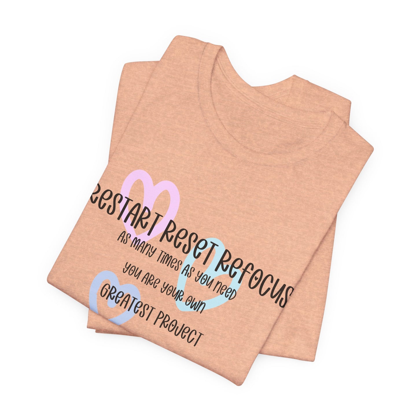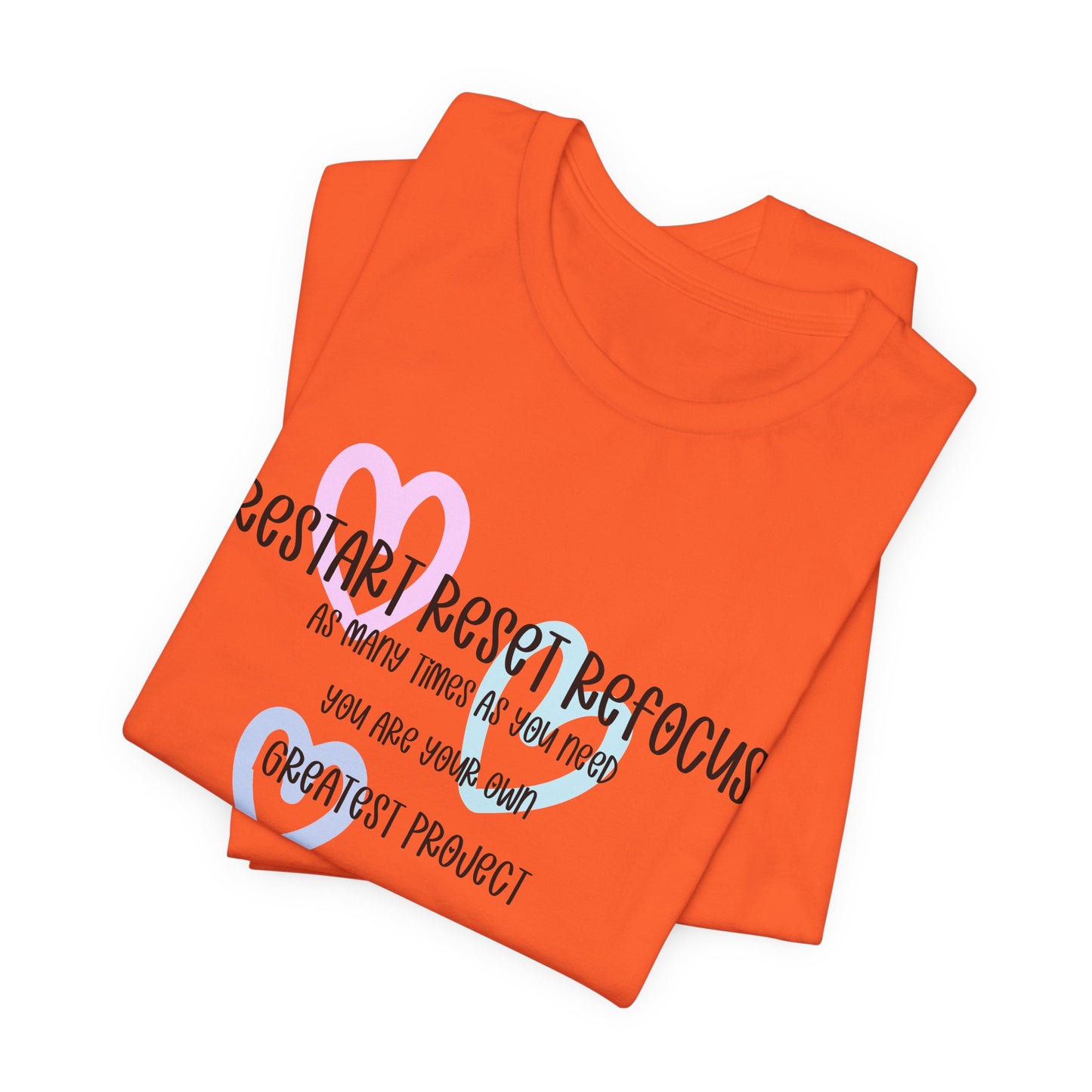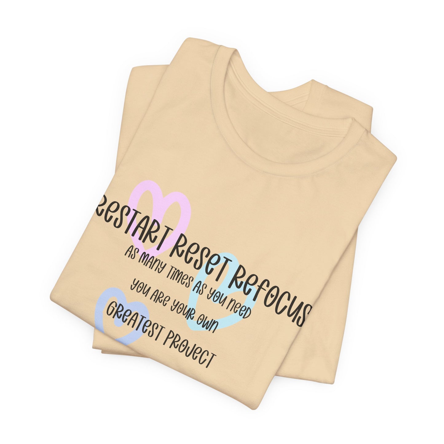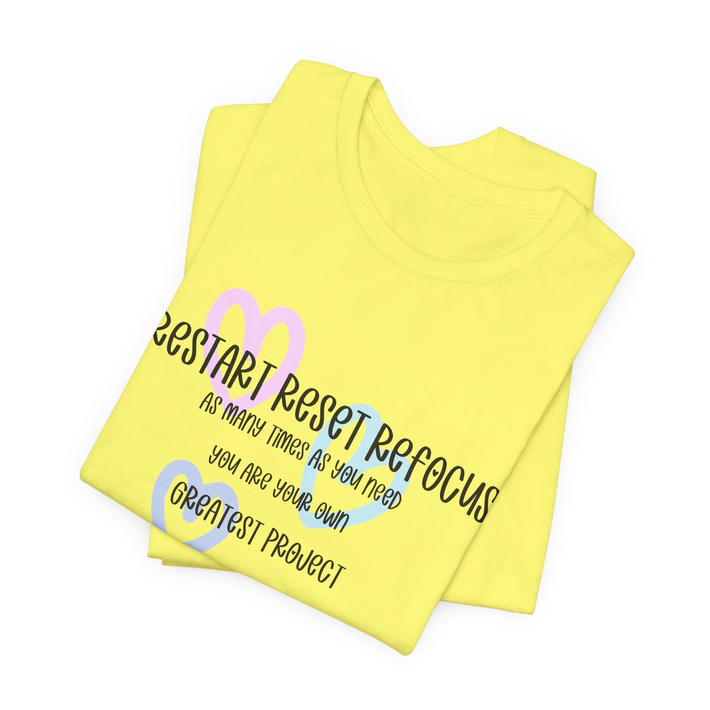Restart Reset Refocus Shirt. Unisex Jersey Short Sleeve Tee