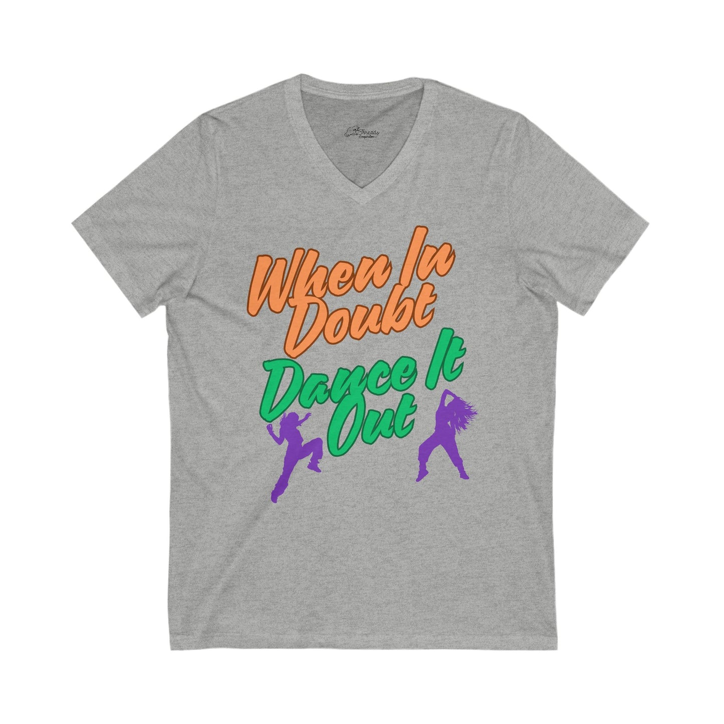 When In Doubt Dance It Out V-Neck. Unisex Jersey Short Sleeve V-Neck Tee