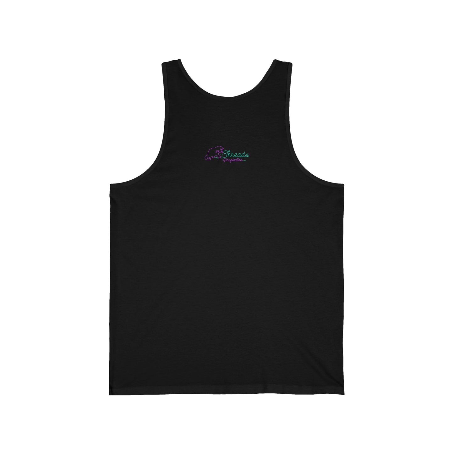 This must-have unisex jersey tank top fits like a well-loved favorite. High quality print makes it an ultimate statement shirt for years to come. This item has side seams to provide structural support. All bindings are the same fabric as the rest of the tank. Depending on the color, cotton, polyester, or rayon can appear.