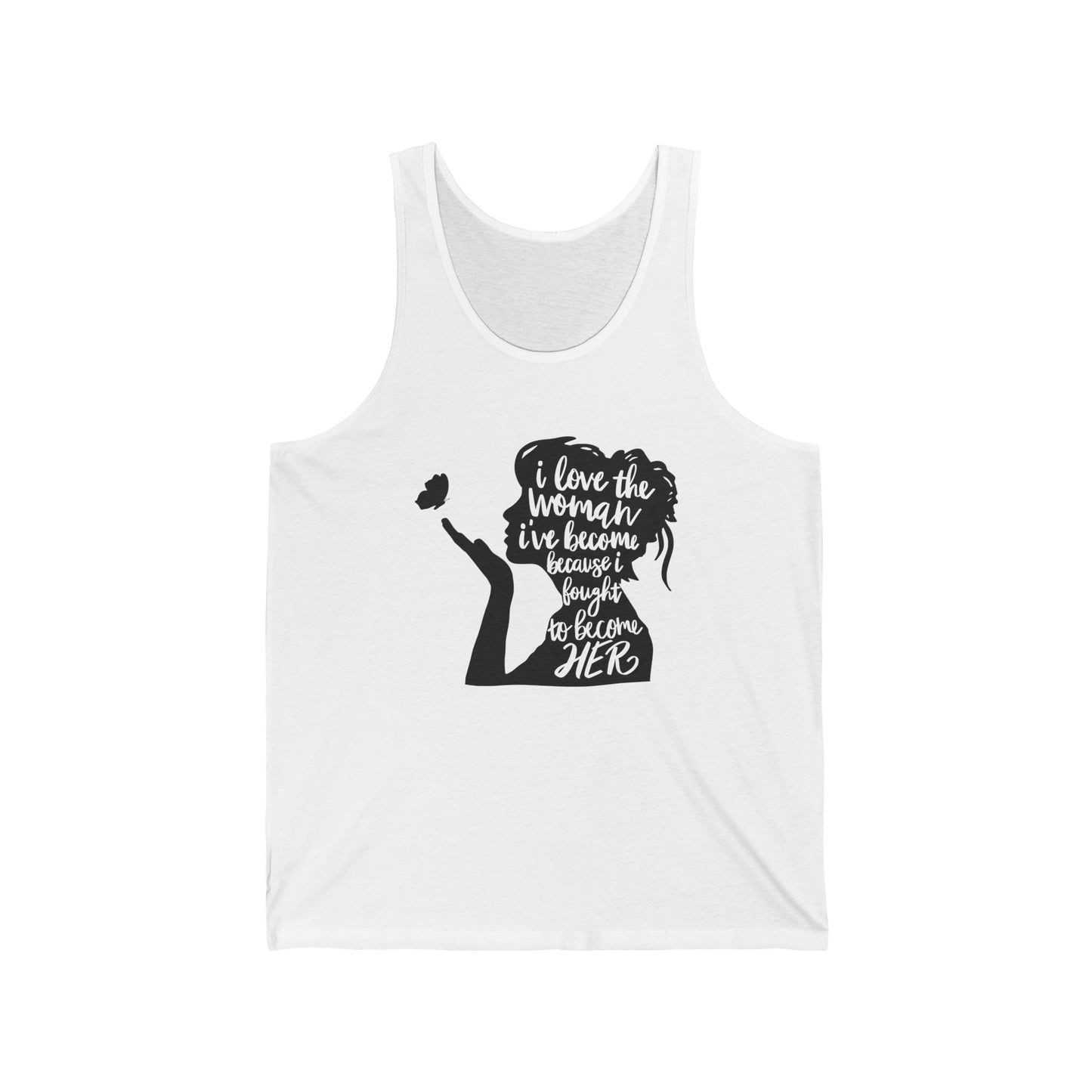 I Love The Woman I Have Become I fought To Be Her. Unisex Jersey Tank